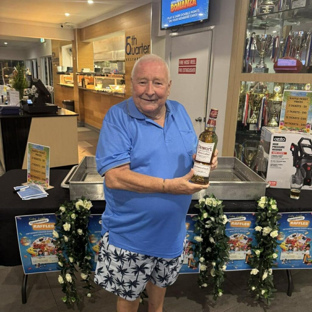 Our Friday Night Community Raffles have incredible prizes every week… and heaps of them! Raffle ticket proceeds are donated to a different community group, charity or cause each month. Purchase tickets from 6pm for a 7pm draw – heaps prizes to be won every week! All raffles this month are in support of Barron River Cricket Club, so come down to the club to support and you could be grinnin’ like this winner and taking home some great prizes! Interested in having us support your cause? Contact Paul with your expression of interest!